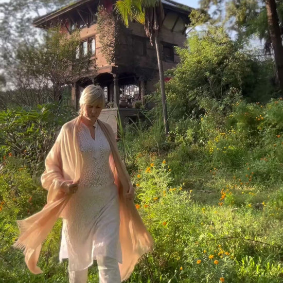 كل قطعة هي قطعة فنية فريدة من نوعها، تمثل ساعات من الحرفية الماهرة وتراث تقاليد النسيج في الهيمالايا.