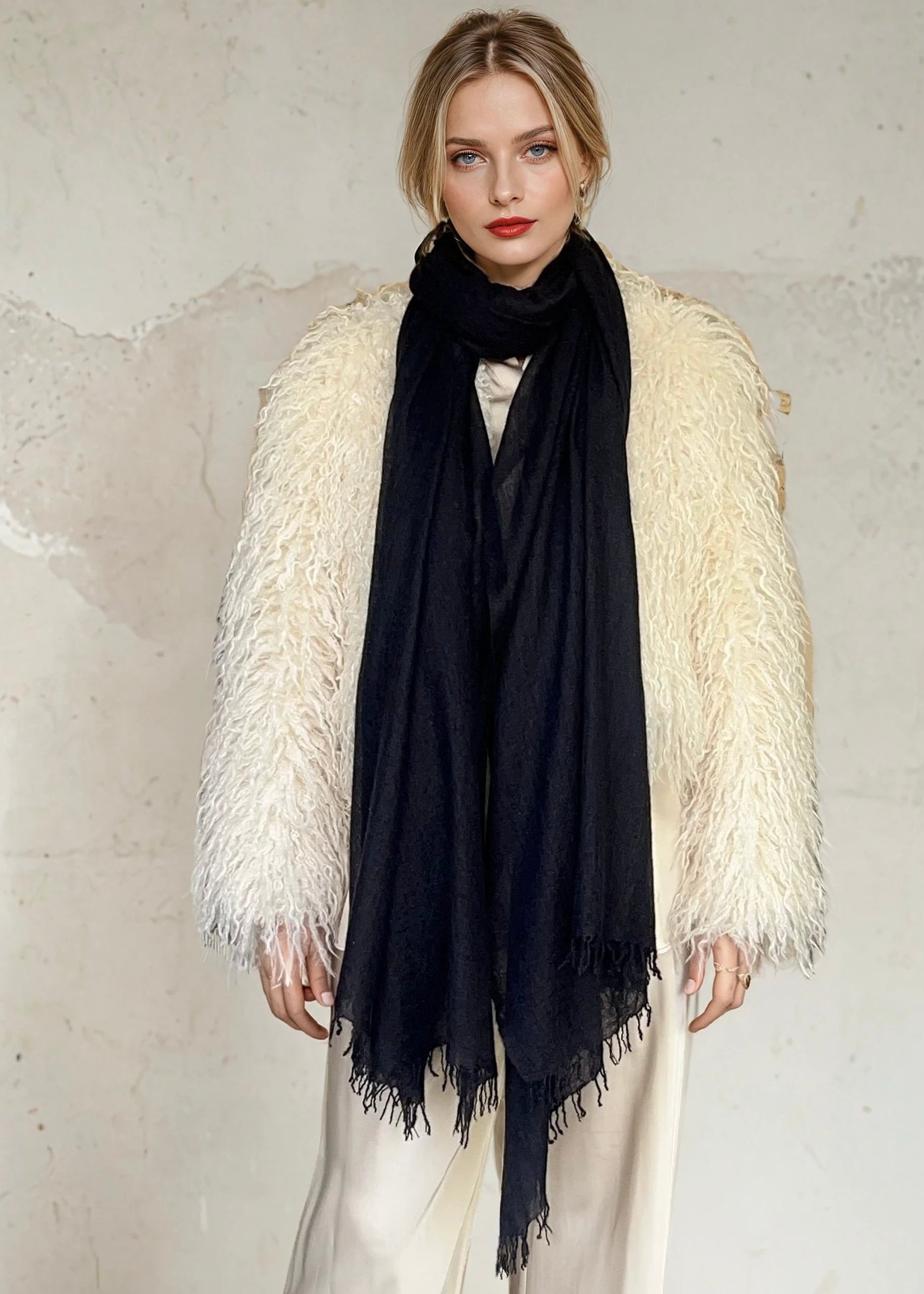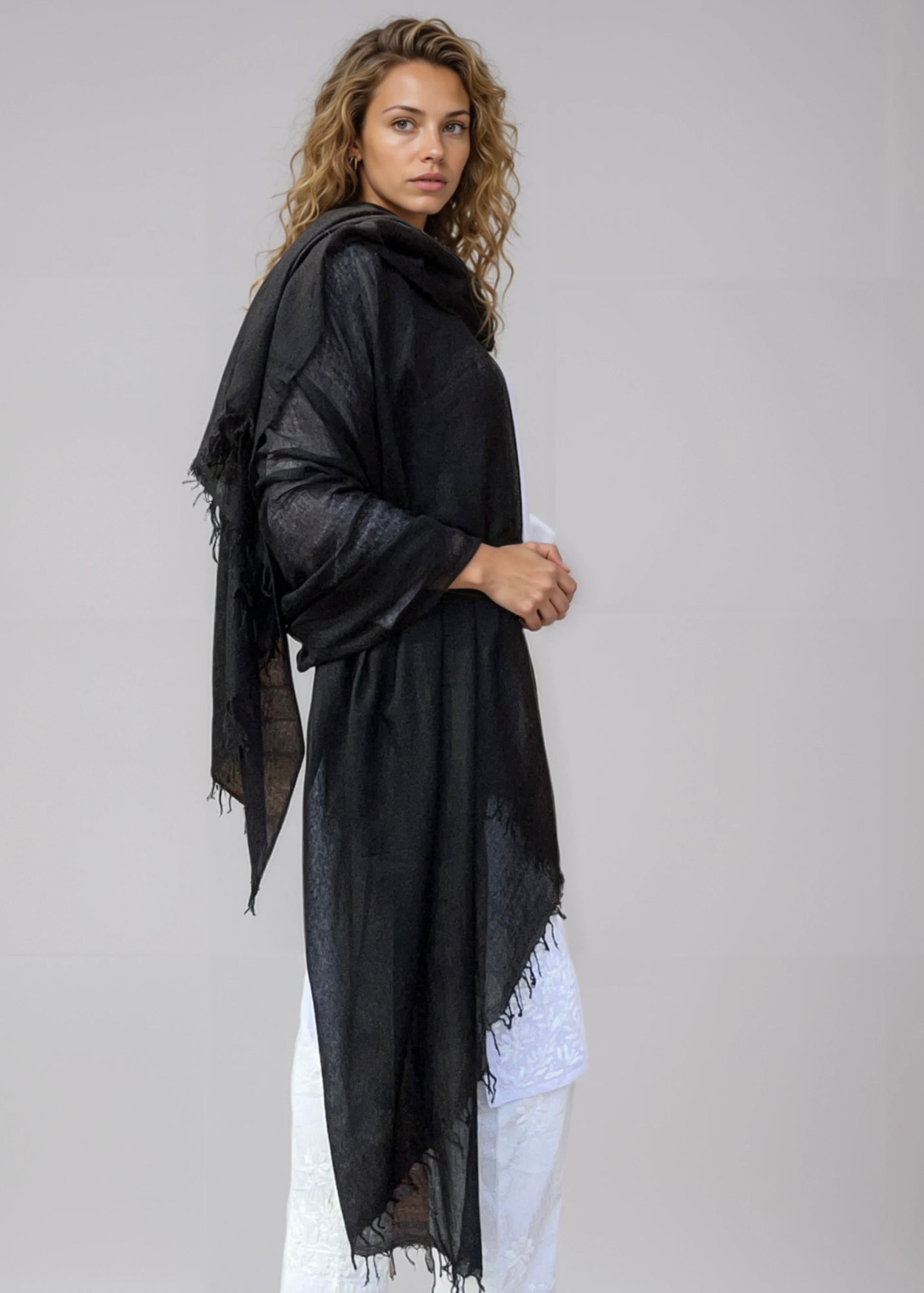 اطرح سؤالاً حول وشاح أسود من الكشمير الخالص | وشاح فاخر منسوج يدويًا