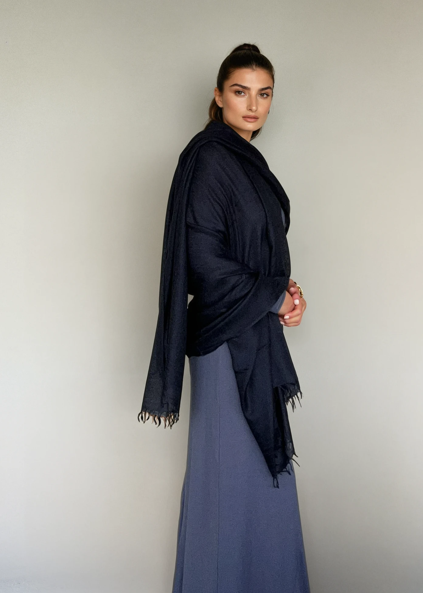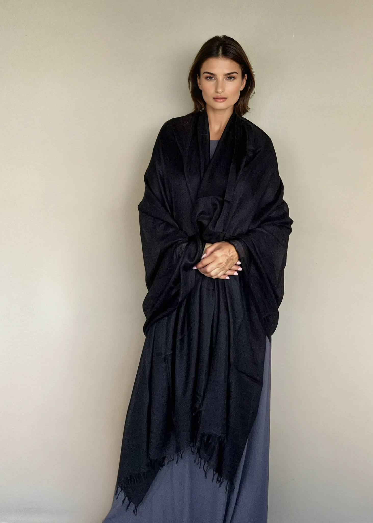 اطرح سؤالاً حول وشاح أسود من الكشمير الخالص | وشاح فاخر منسوج يدويًا