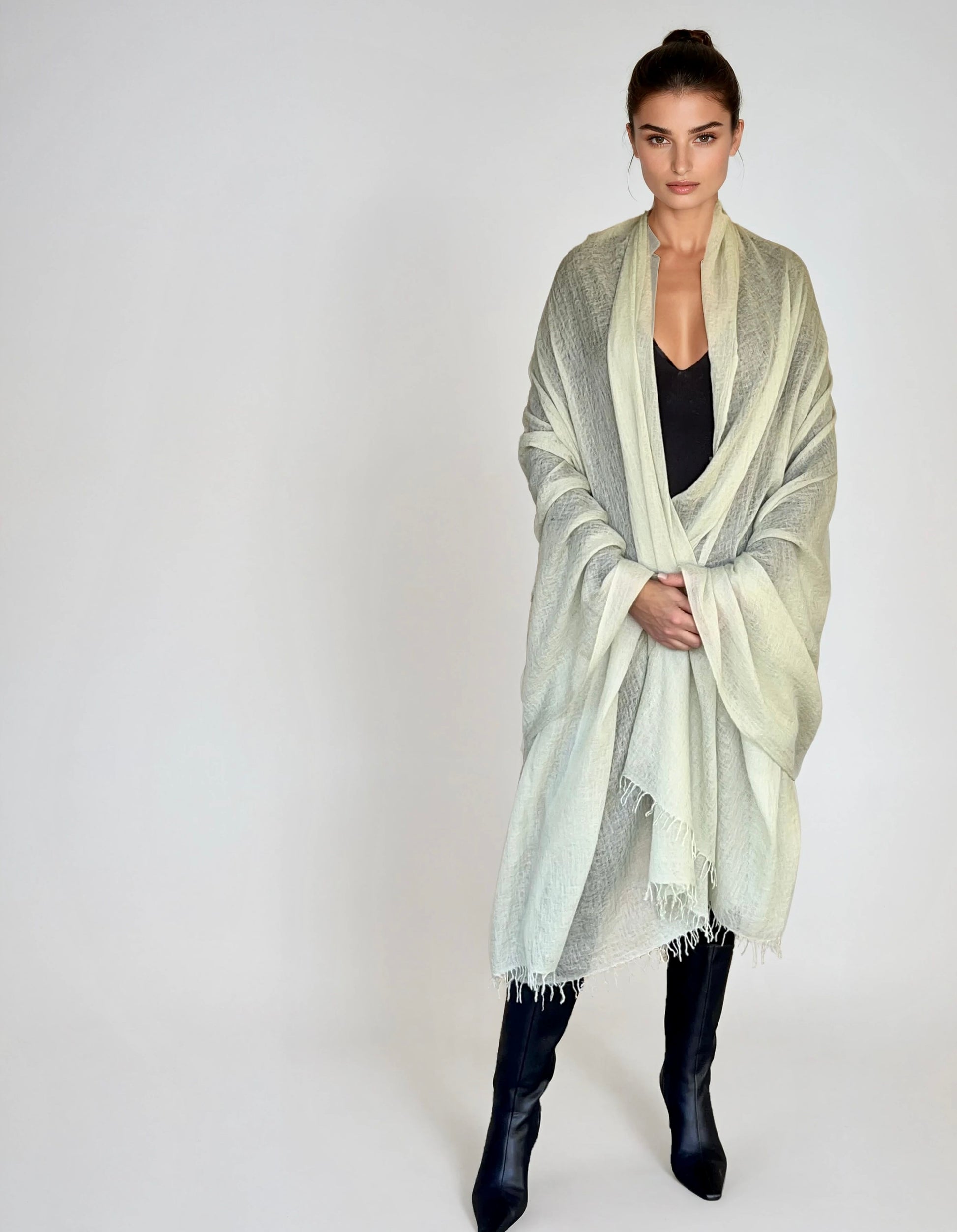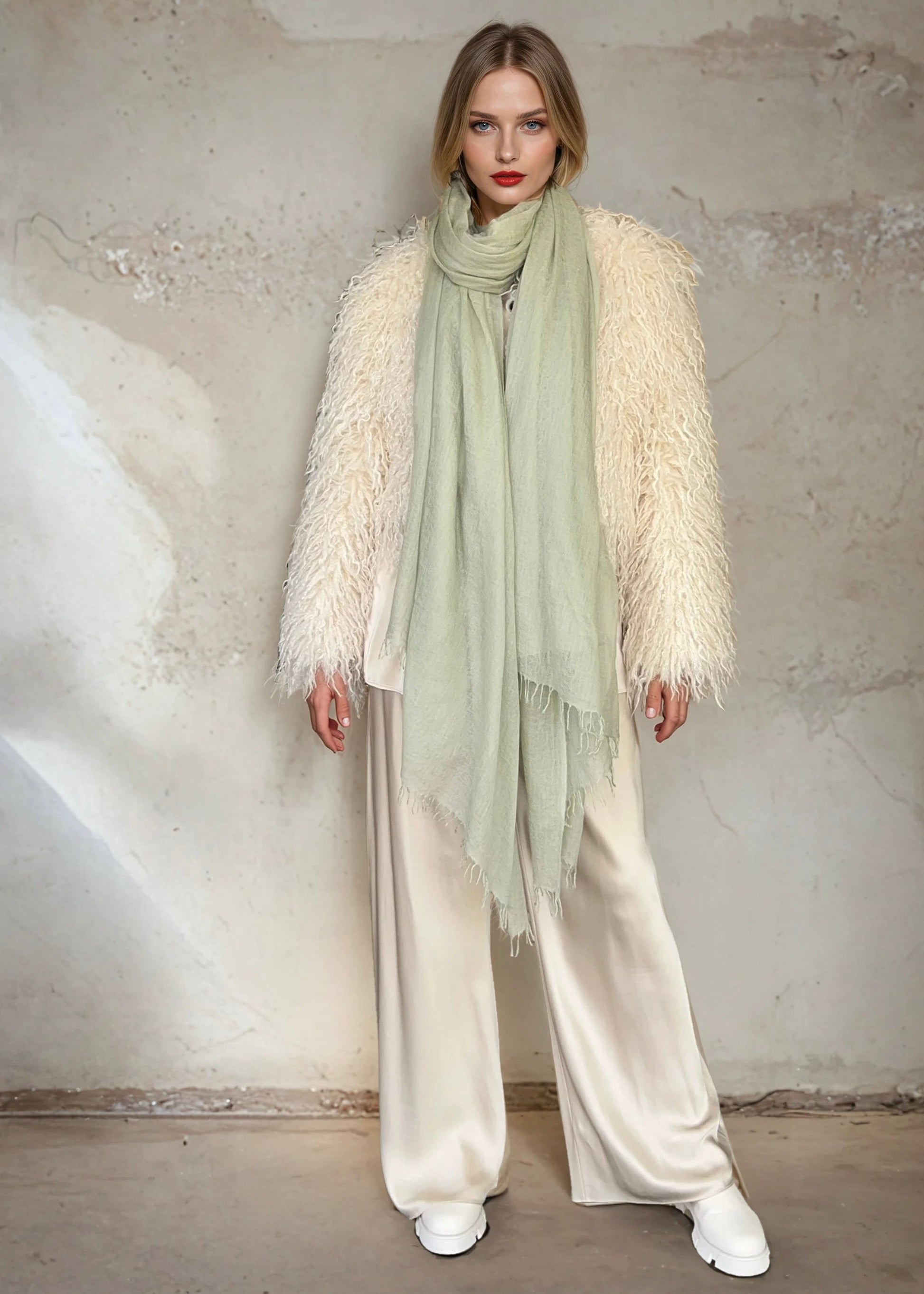 وشاح من الكشمير الخالص بلون السيلادون | وشاح فاخر منسوج يدويًا