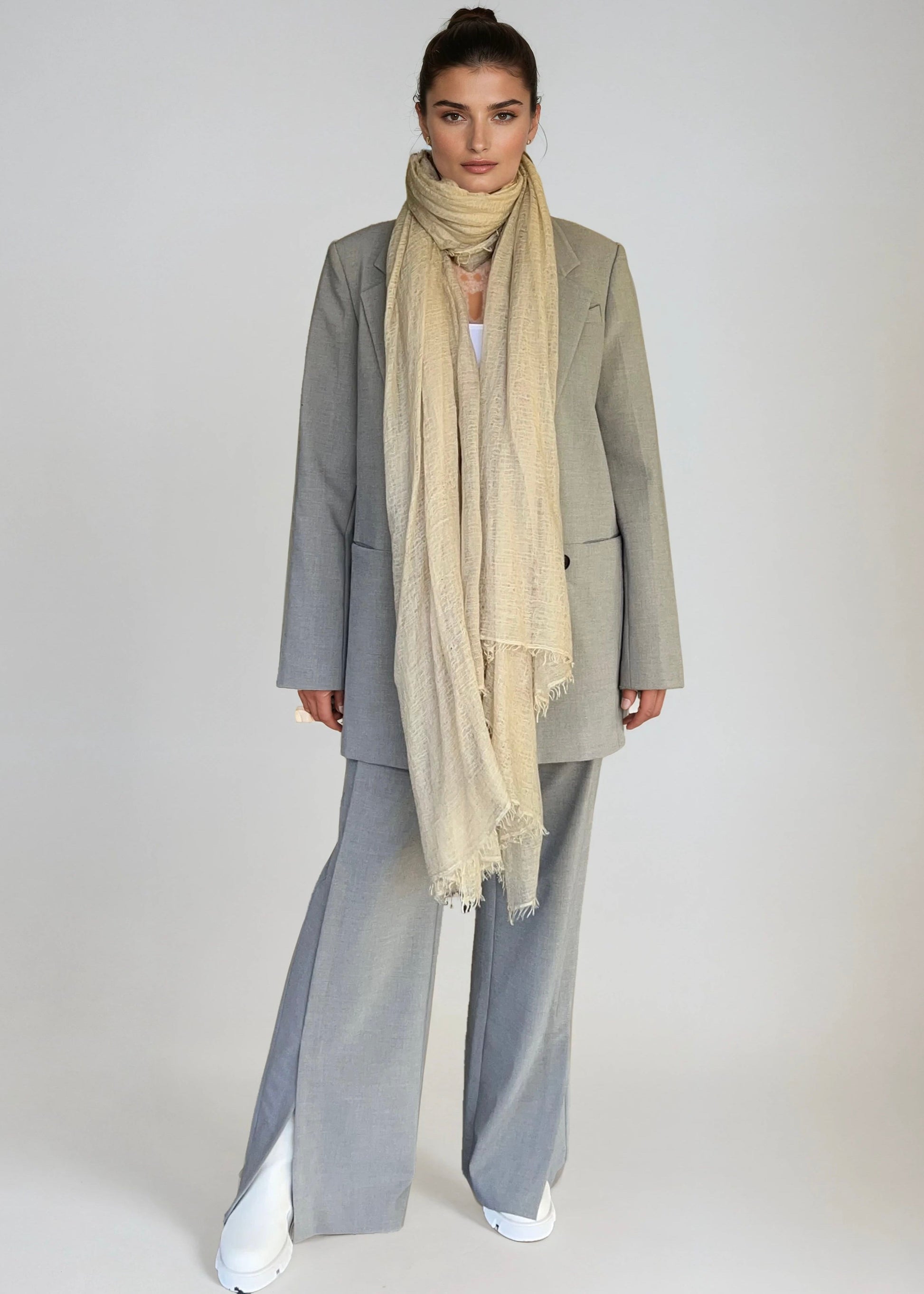 لفافة كشمير ربيعية وصيفية بلون كريمة الفانيليا | خفيفة الوزن