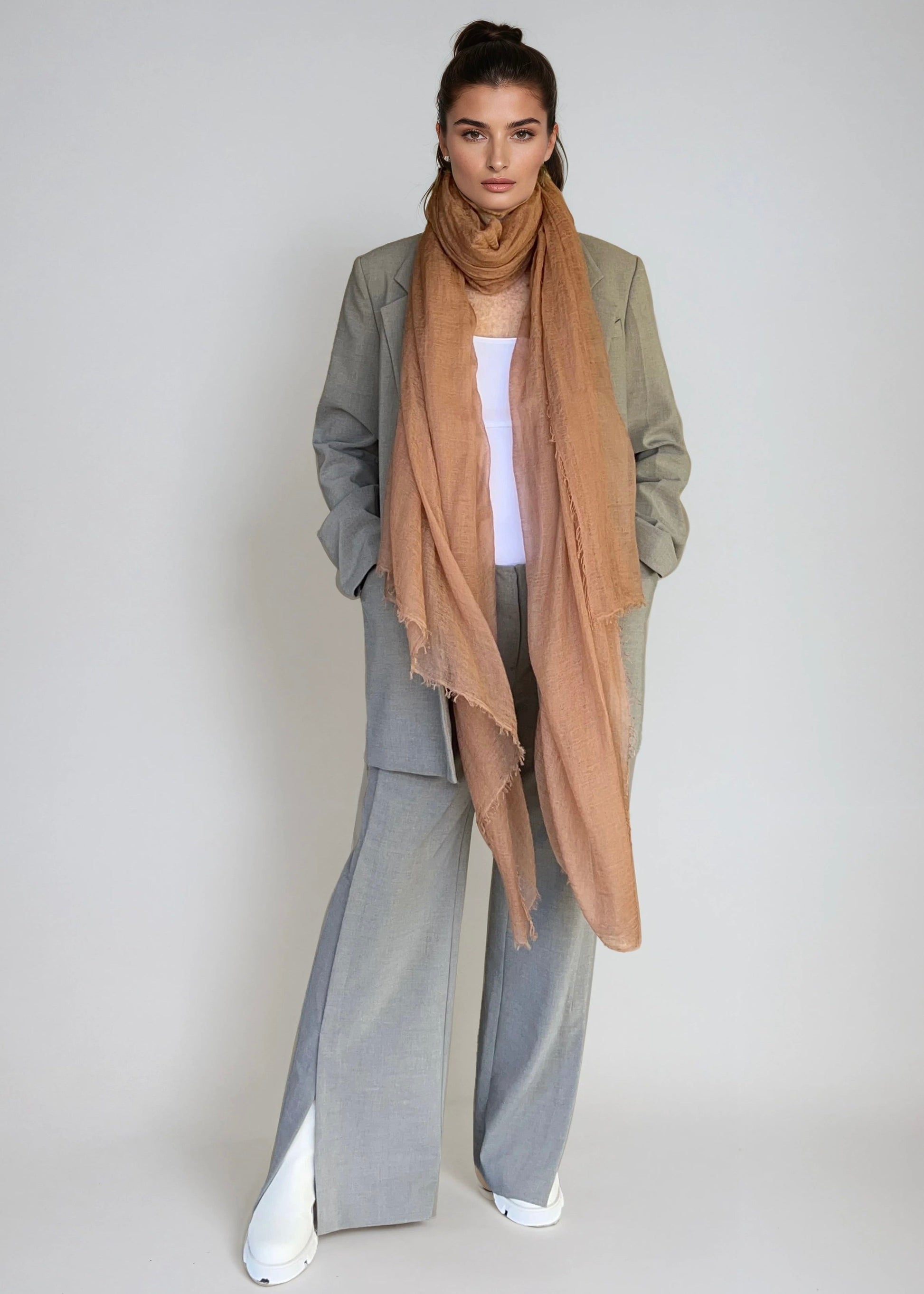 اطرح سؤالاً حول وشاح كشمير برونزي لربيع وصيف من غروب الشمس | خفيف الوزن