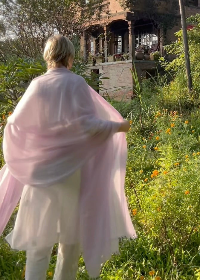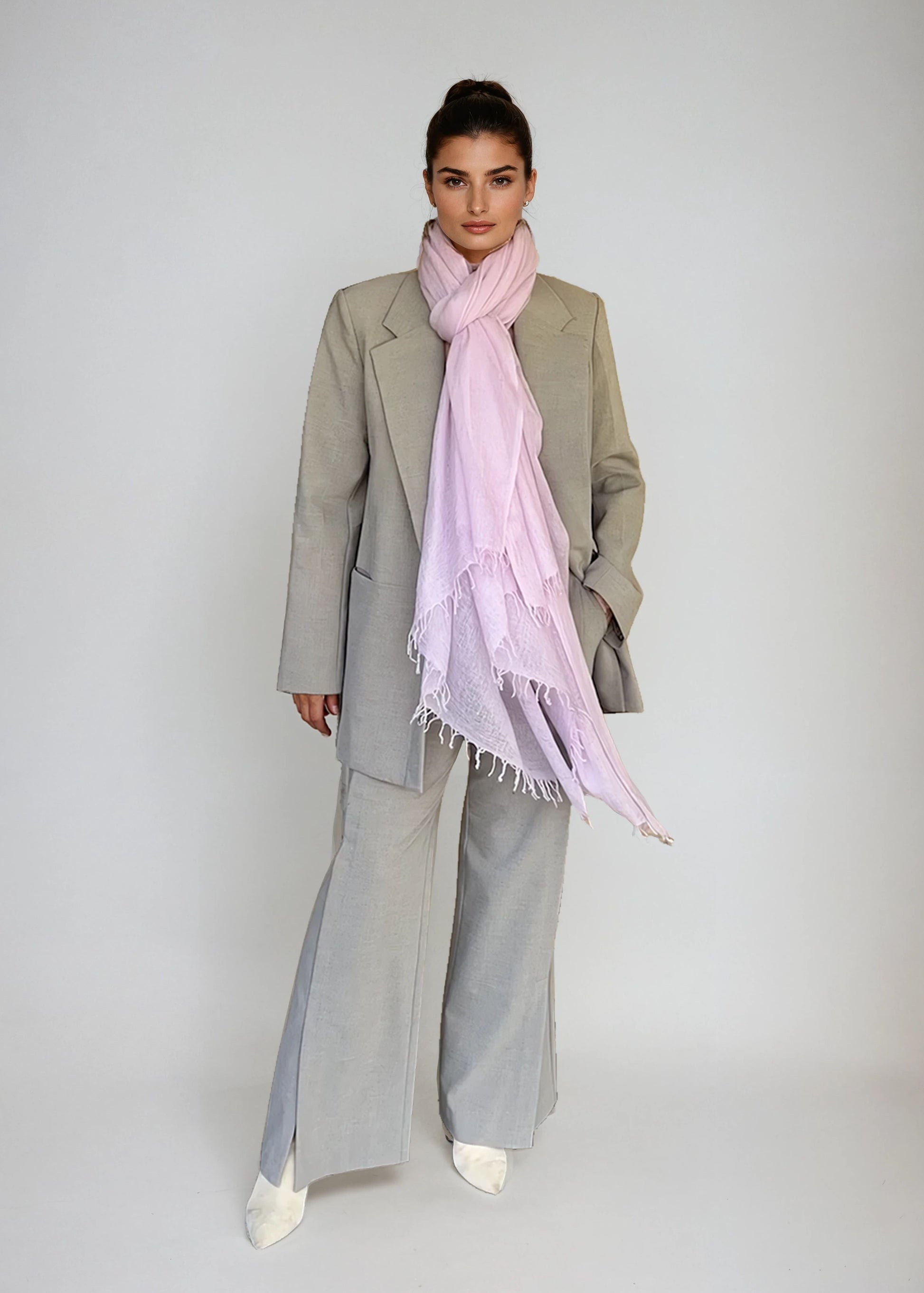 Erleben Sie die erhabene Schönheit unseres handgewebten, übergroßen, lavendelfarbenen Kaschmir-Wickeltuchs. Dieses von talentierten Kunsthandwerkern fachmännisch gefertigte Tuch verkörpert zeitlose Eleganz und Luxus. Die übergroßen Abmessungen sorgen für einen anmutigen Fall und vielseitige Styling-Optionen, während die zarten Kaschmirfasern für unvergleichliche Weichheit und Wärme sorgen. Hüllen Sie sich in ein Meisterwerk der Handwerkskunst und gönnen Sie sich ultimativen Komfort und Eleganz.
