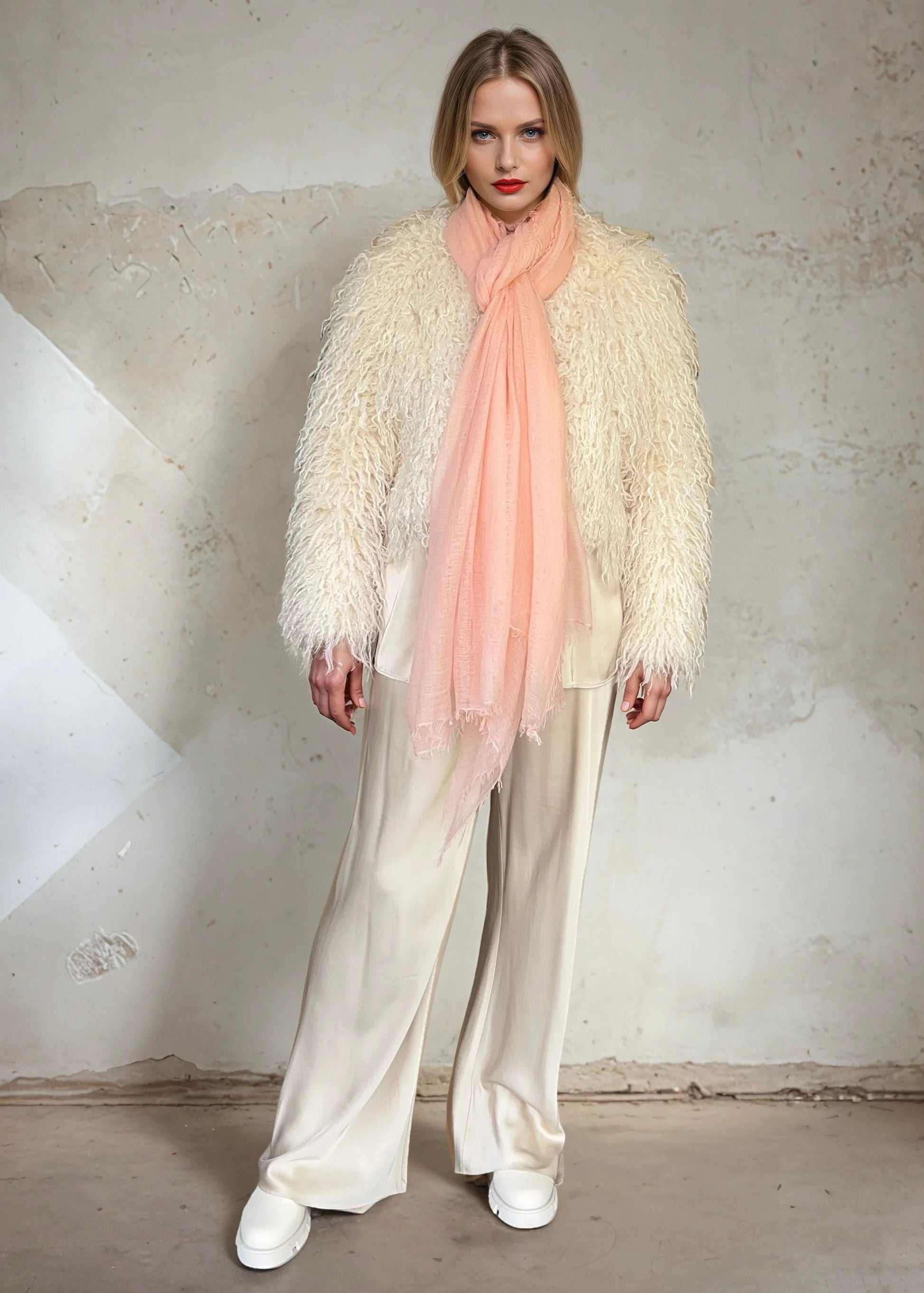Premium Sunset Blush Cashmere Wrap - Luxury Lightweight Designer Shawl