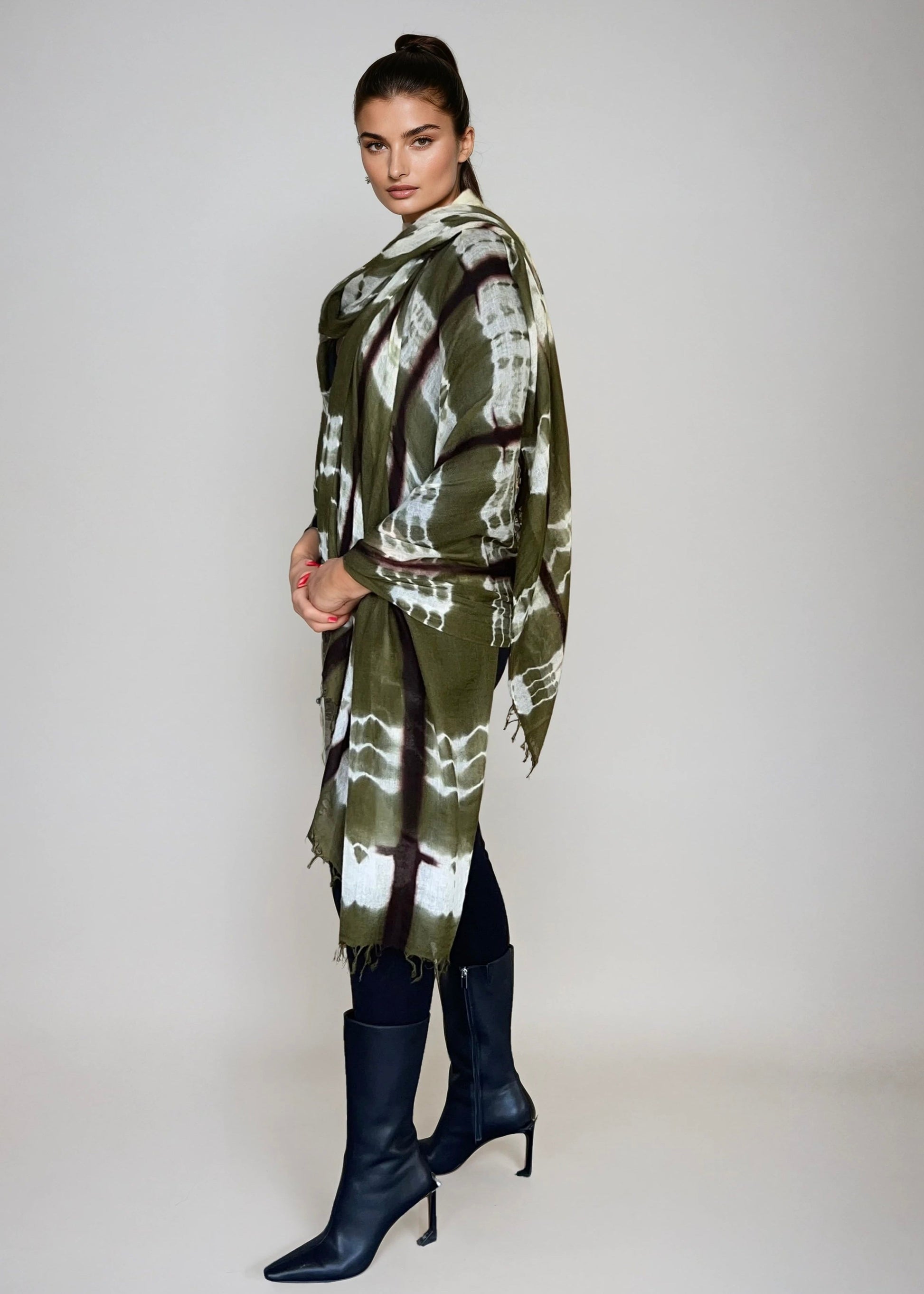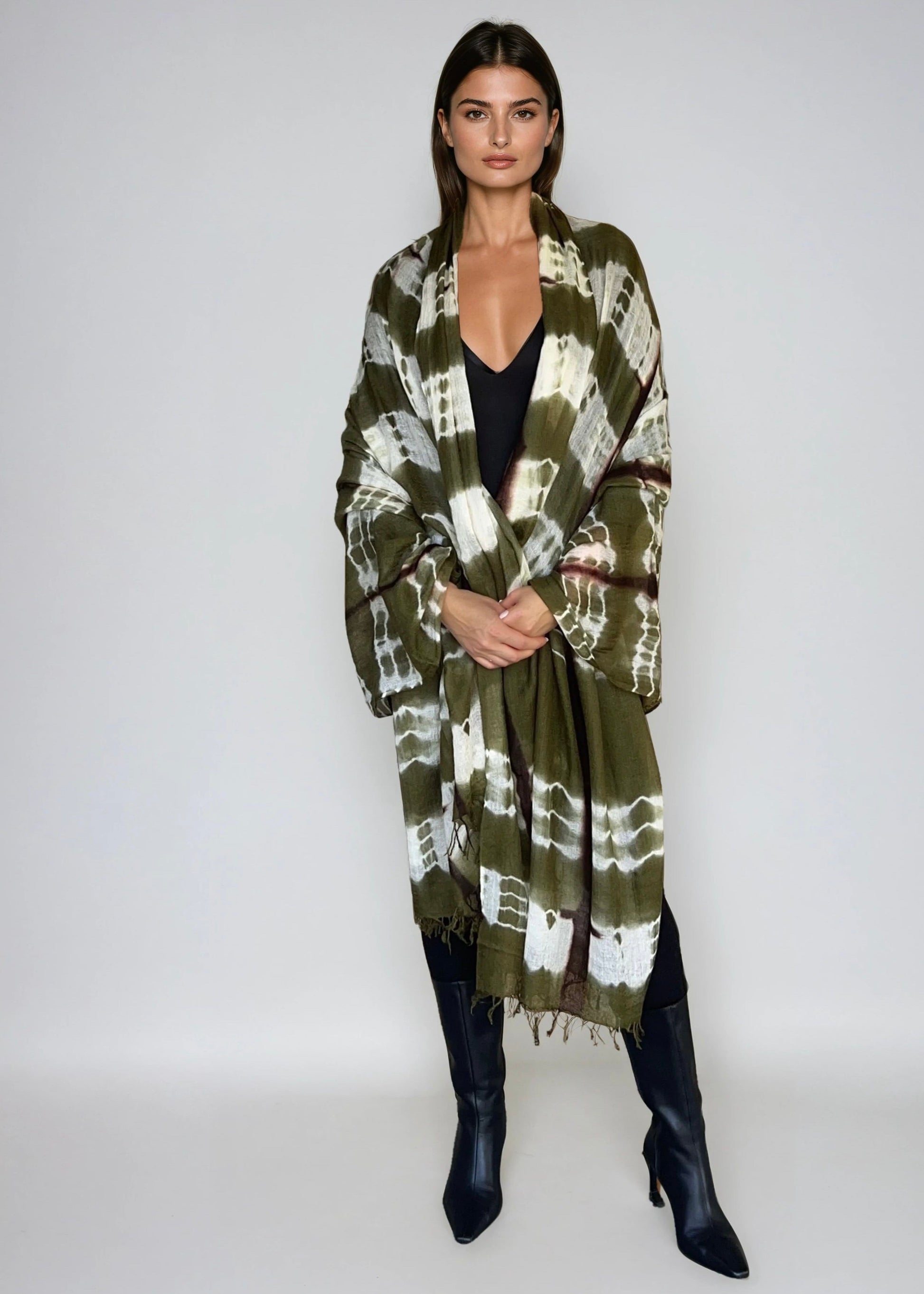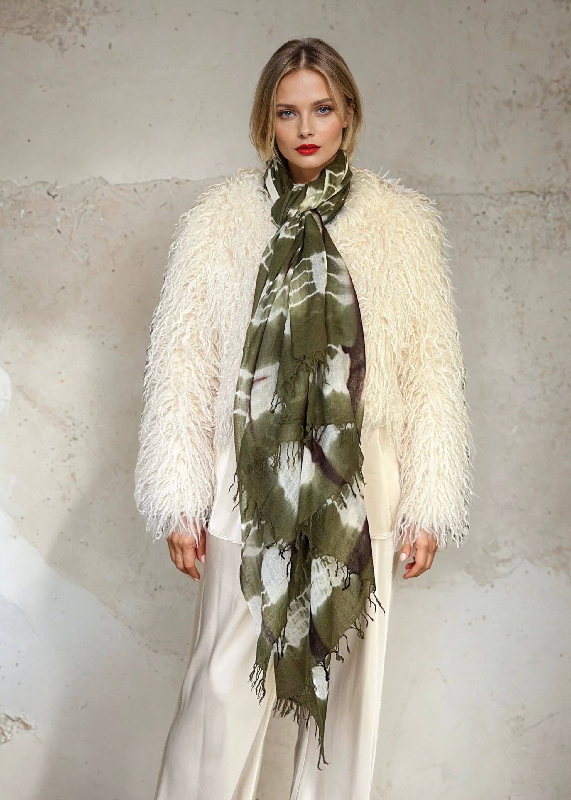 Forest Green, Brown & White Cashmere Wrap | Hand-loomed Luxury Scarf | Limited Edition