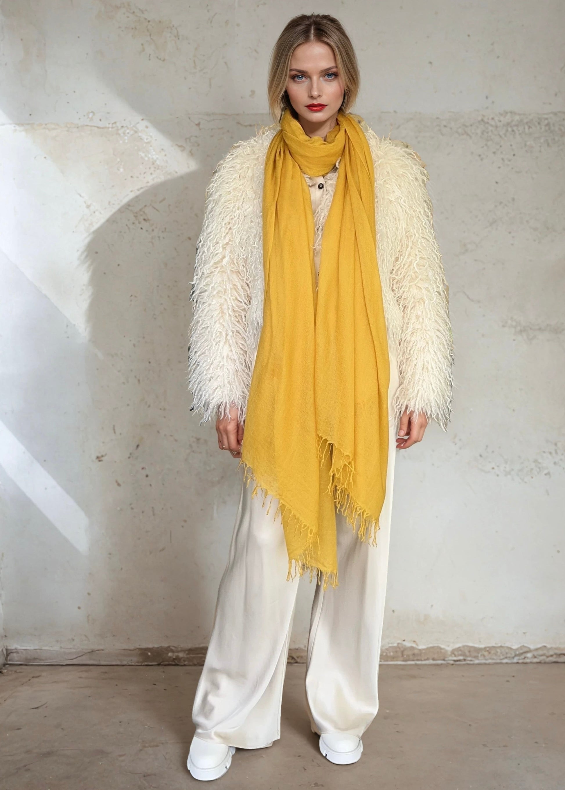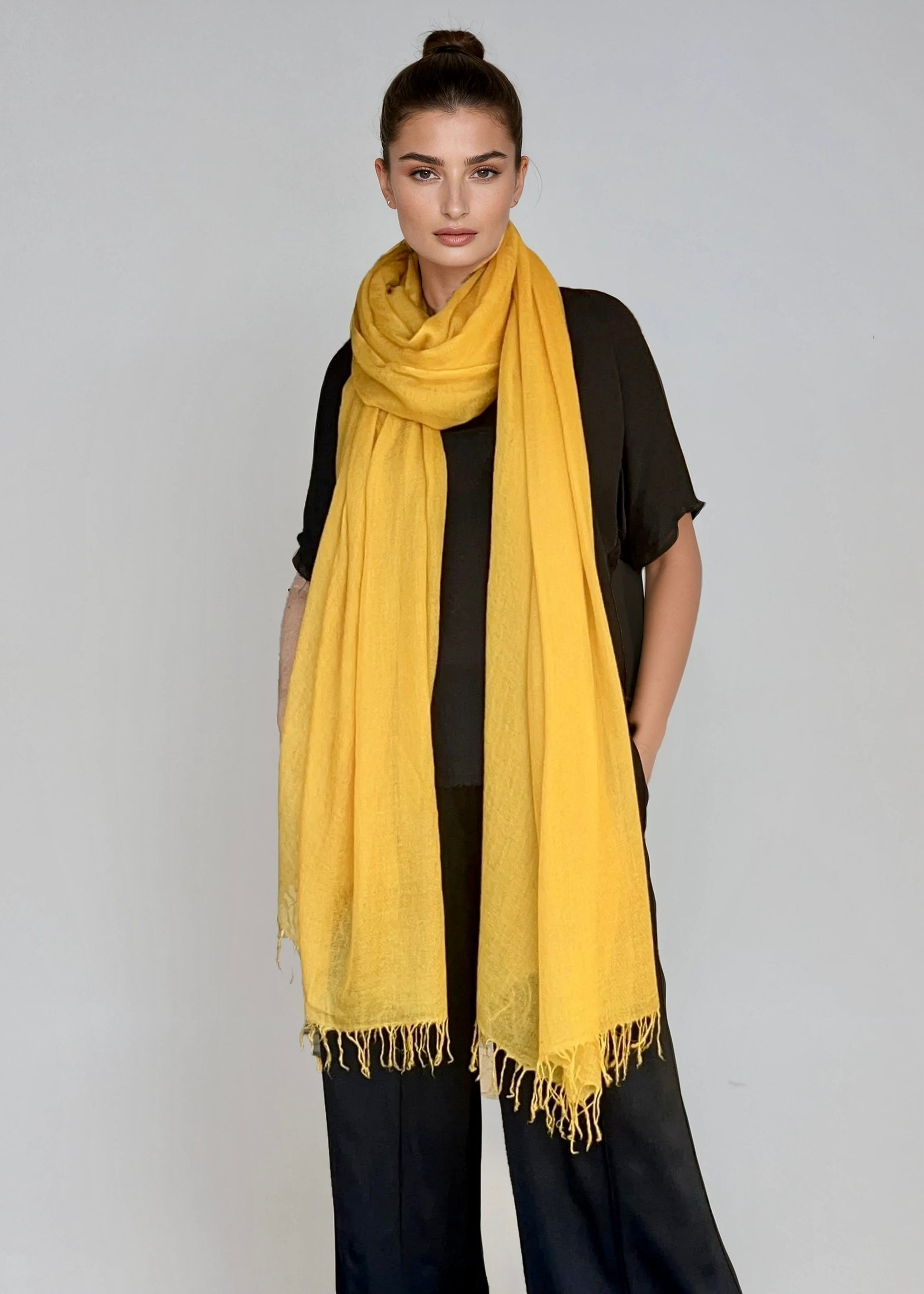 Premium Saffron Handloom Cashmere Wrap - Luxury Designer Scarf