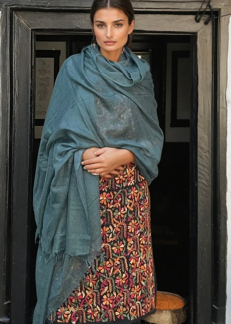Midnight Teal Cashmere Wrap | 100% Handwoven Luxury Shawl