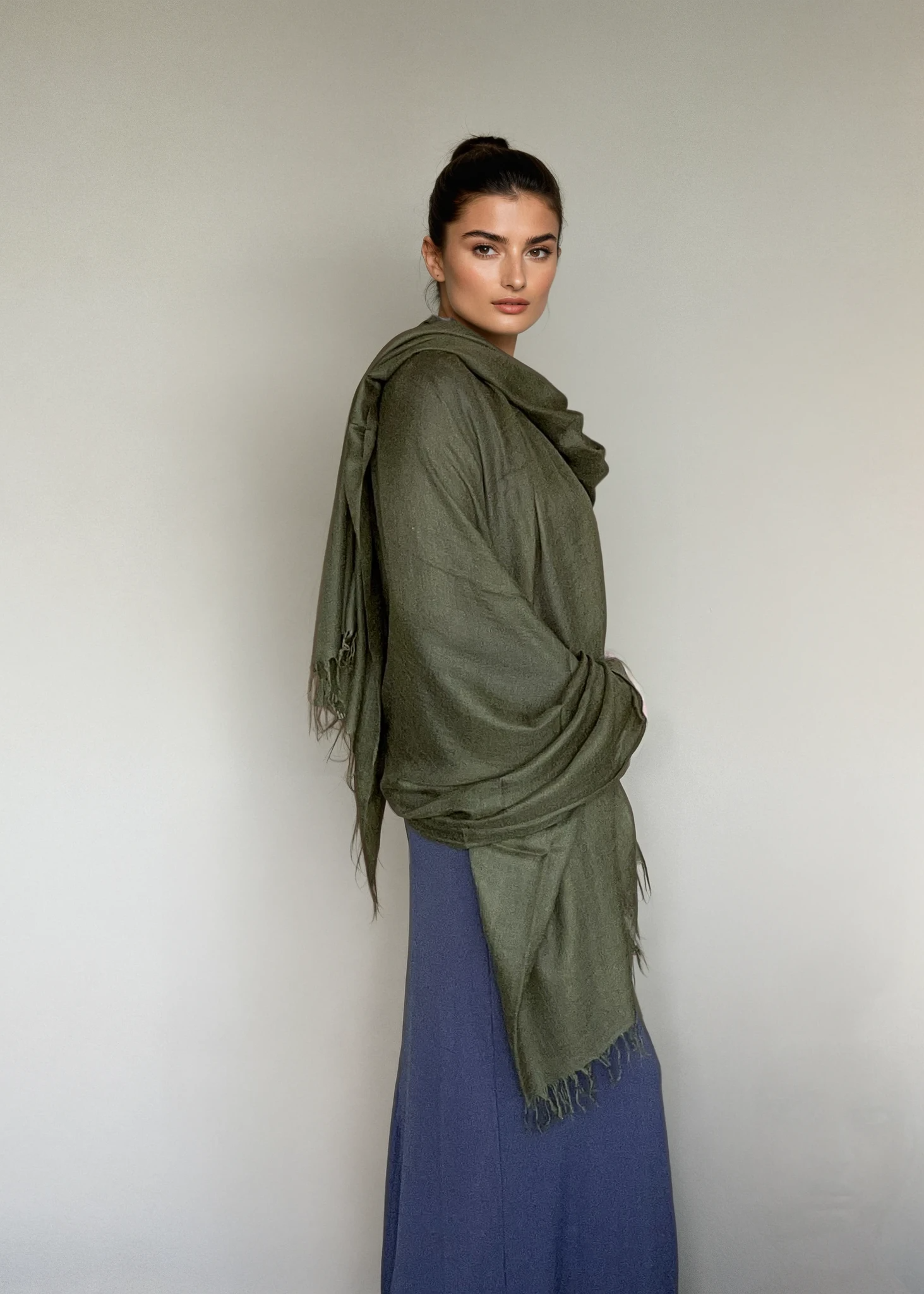 Olive Green Handloom Cashmere Wrap - Luxury Scarf | Cashmere Luxe